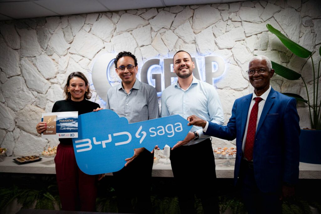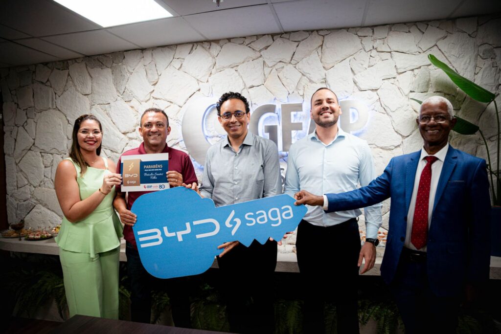 Os sorteados Rosa Valéria Comucci Rodrigues, do Rio de Janeiro (RJ), com o BYD Dolphin GS 180EV; Lívia Maria Coelho Borges, de Brasília (DF), com o BYD Yuan Pro GS 290EV; Bráulio Santos Filho, de Aracaju (SE), com o BYD Song Pro GL DM; e Marina Di Napoli Pastore, de João Pessoa (PB), com o BYD Song Plus GS DM vieram pessoalmente na sede da Geap, em Brasília, para a entrega simbólica do prêmio.